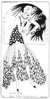 Each panel exhibited a flapper wearing one of the current fashions,[1] with a witticism typed at the bottom.[2][3] Burrows drew her panels at an image size of 3" × 6" on Bristol boards measuring 3½" × 6½".